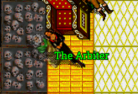The Battlegrounds can be found by going through a secret door at the back of the lightning troll cave. This secret door can be found on the western wall on the north end of the cave. This will take you to a maze that must be navigated until you find another secret door. The second secret door is on a western wall on a southern section of the maze. Once through this second secret door you will need to continue west until you are teleported to a new area which has The Arbiter.