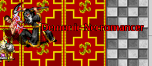 The Demonic Necromancer is surrounded by 2 Demons that constantly cast Death. To kill him, you need to pull him into the hidden room alone away from his demons.