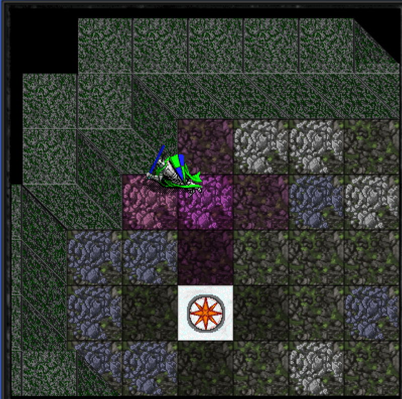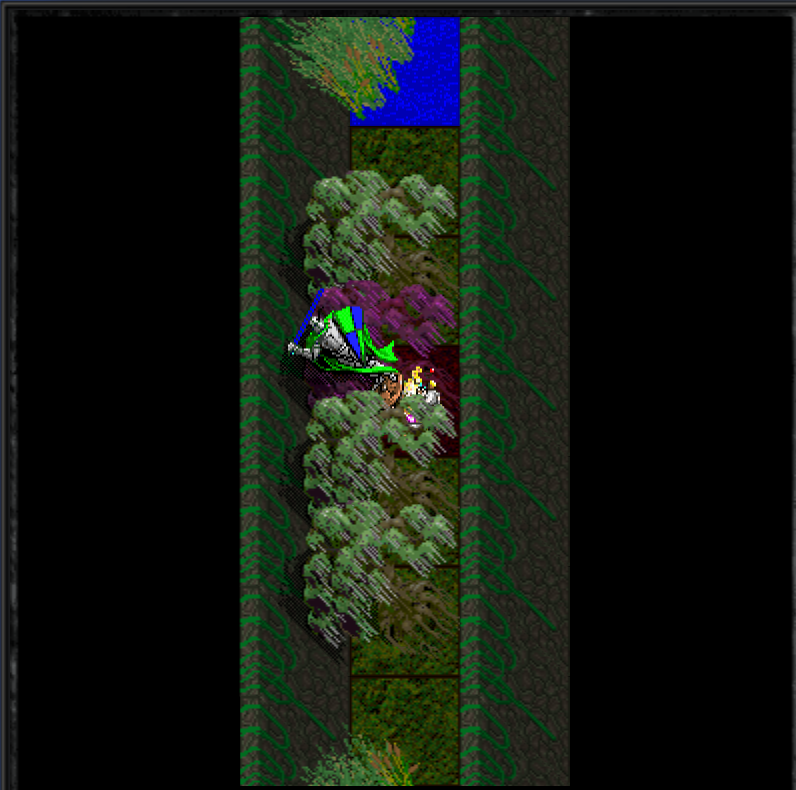 Step 3. If you followed the steps above correctly, you should arrive just south of the drop into Frog Town. Go down the rope into the frog area and head DIRECTLY SOUTH until you see a purple swamp tree (pictured below). While standing on this tree, you must WEAR the ring. If you try to WEAR the ring at any other point you will get a system text hinting at this location and preventing you from wearing the ring. Once you are wearing the ring in one of your ring slots, you must move off this tree hex then back onto it, and it will teleport you to a new area.