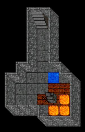 Vulcan, a blacksmith of great renown, moved up to this level with his daughter, Alia, to get away from the crowds of the city. If you can find the obsidian egg and take it to him, he will craft for you an Axe-Glacier of great quality, which will return to the hand that threw it. Beware of Alia, though, for she, too, covets the Egg, and would steal it if she could. The entrance to Vulcan's forge is hidden behind a rock wall, and the teleport mechanism requires the use of a moonstone ring, and can only be activated at night.